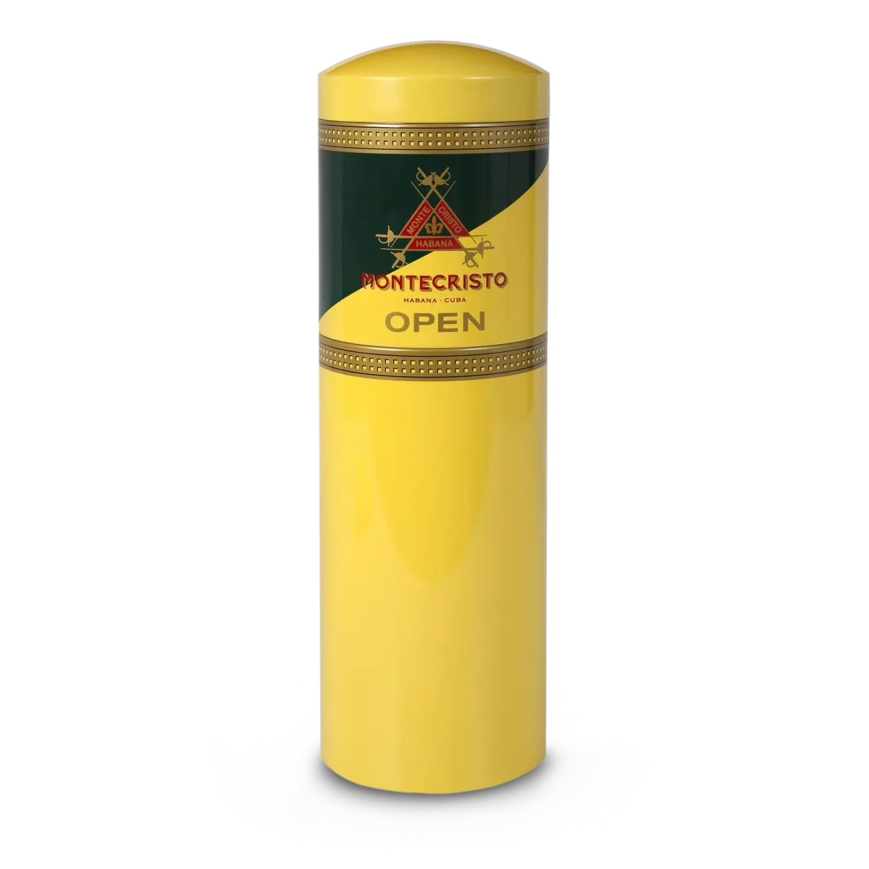 Envase fabricado en latón diseñado con la misma forma que el tubo original de Habanos y con una capacidad entre 20 y 25 tubos de acuerdo a la vitola. Dimensiones: 33cm x 10cm / Brass like produced case designed with the same shape as the original Habanos tube. Capacity of 20 or 25 tubes.